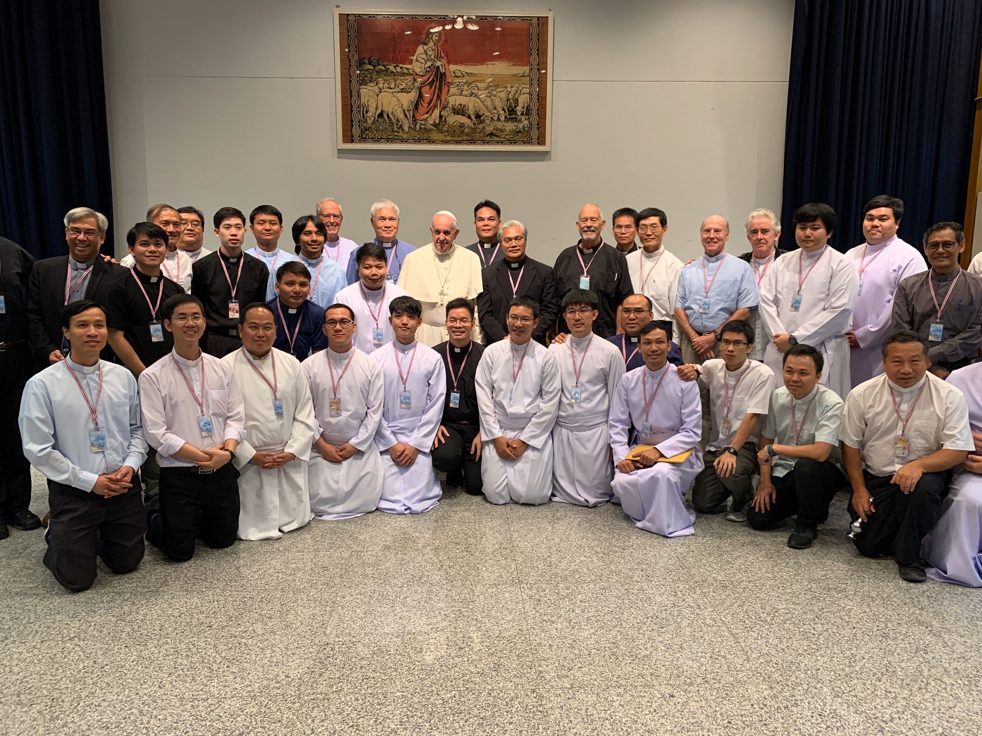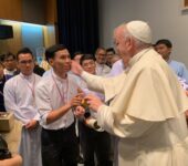 Durante il suo viaggio apostolico in Thailandia e Giappone, papa Francesco ha salutato un gruppo di 48 gesuiti provenienti dall’area del sud-est asiatico. Con loro si è trattenuto in una conversazione per circa mezz’ora. Subito dopo il suo incontro con i vescovi della Conferenza episcopale della Thailandia e della Federazione delle Conferenze episcopali asiatiche presso il Santuario del beato Nicolas Bunkerd Kitbamrung, Francesco si è spostato in una sala attigua dove erano i religiosi ad attenderlo. Lo ha accolto il p. Augustinus Sugiyo Pitoyo, superiore della regione della Thailandia, composta da 33 gesuiti (17 sacerdoti, 14 studenti in formazione, un fratello e un novizio). Ha partecipato all’incontro anche mons. Enrique Figaredo Alvargonzález, gesuita spagnolo, Prefetto apostolico di Battambang in Cambogia[1].