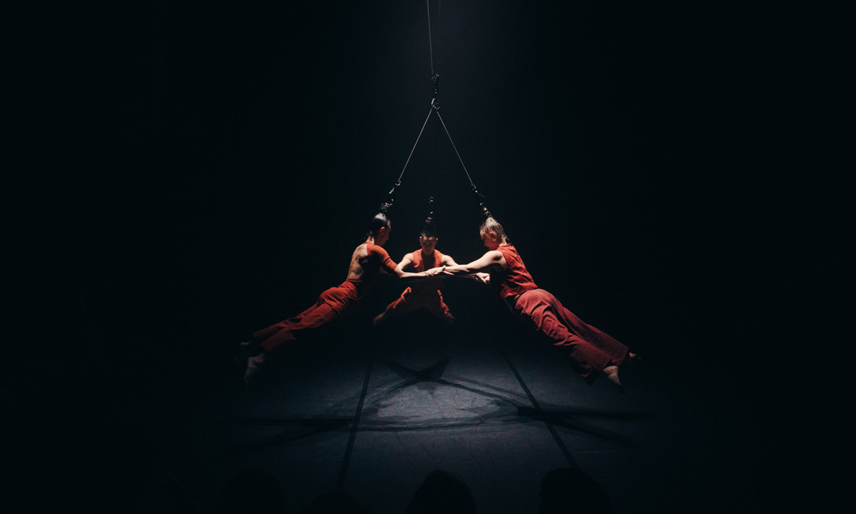 L’atmosfera è magnetica e sospesa, come gli artisti che si esibiscono con la tecnica della «sospensione capillare»: un’antica pratica circense dalle origini cinesi, riemersa nel tempo attraverso sperimentazioni e sventure. Le acrobazie avvengono in aria, con gli artisti appesi per i capelli, mentre i testi delle mistiche innalzano i pensieri e scavano negli interrogativi dell’esistenza. Il volo delle artiste diventa immagine del desiderio di ascesi, proprio non solo dei visionari, ma di ogni persona che sia alla ricerca della Verità. Gli acrobati incarnano la condizione umana, tesa tra cielo e terra, abitata da una sete di Dio che non annulla la fragilità, ma la illumina.