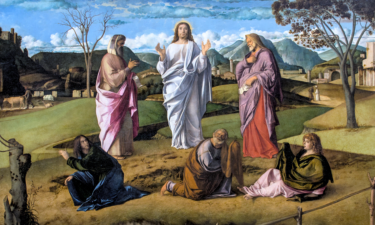 Sull’alto monte Gesù si trasfigura, cioè cambia aspetto, appare splendente di luce soprannaturale che irradia dal suo stesso corpo: è la gloria del risorto. Accanto a lui appaiono due personaggi: Mosè ed Elia, i rappresentanti della Legge e dei Profeti. Gesù nella gloria è il compimento sia della legislazione mosaica, sia del profetismo: la novità del Cristo s’incarna nella storia del suo popolo, al punto da essere il nuovo Mosè e il nuovo Elia.